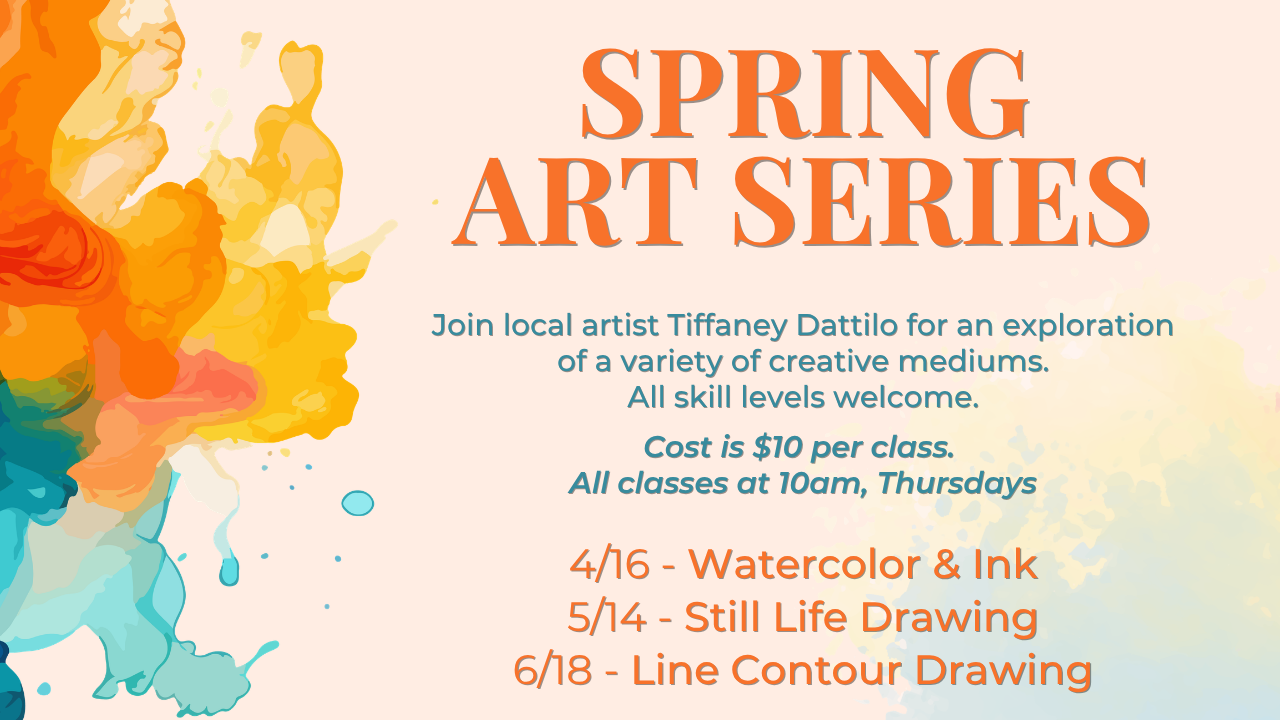 Join local artist Tiffaney as she leads the first of three Spring Art Series classes, Watercolor & Ink. This class introduces the wet-on-wet watercolor method with added ink for organic, beautiful effects. Subjects include natural items like fruit and vegetables.