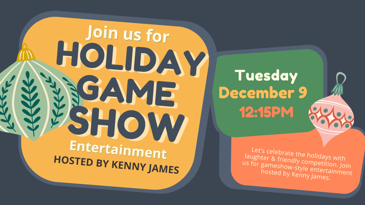 Let's celebrate the holidays with laughter and friendly competition. Join us for gameshow-style entertainment hosted by Kenny James.